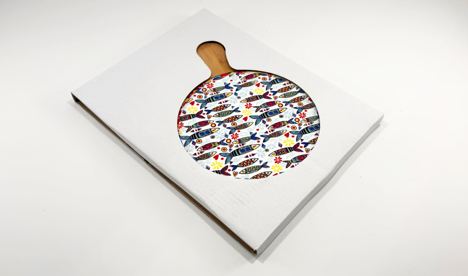 1 x Tocător/Platou din bambus cu inserție ceramică decorativă (mâner ergonomic pentru servire ușoară).
